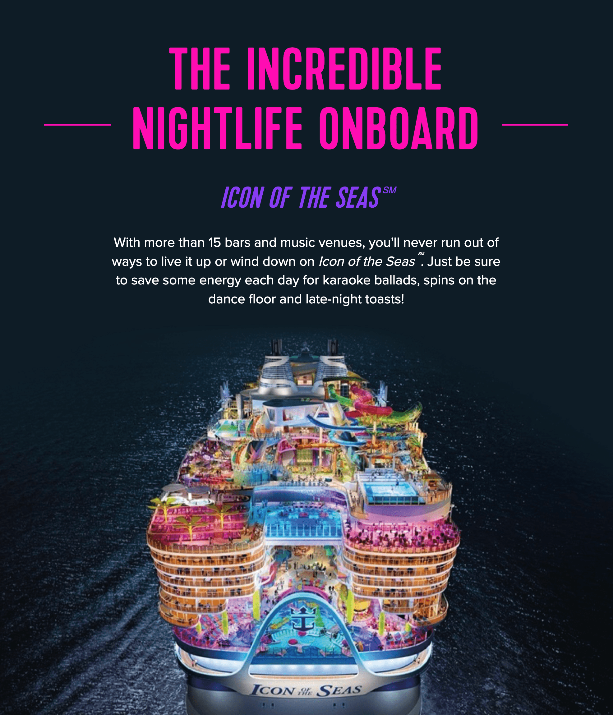 With a vibrant brand identity, these projects reflect the company’s adventurous and fun-loving spirit. They help to promote landmark events (such as the launch of the world’s biggest cruise ship, Icon Of The Seas) and one-of-a-kind experiences (like visits to Royal Caribbean’s private island in the Bahamas, Perfect Day at CocoCay).