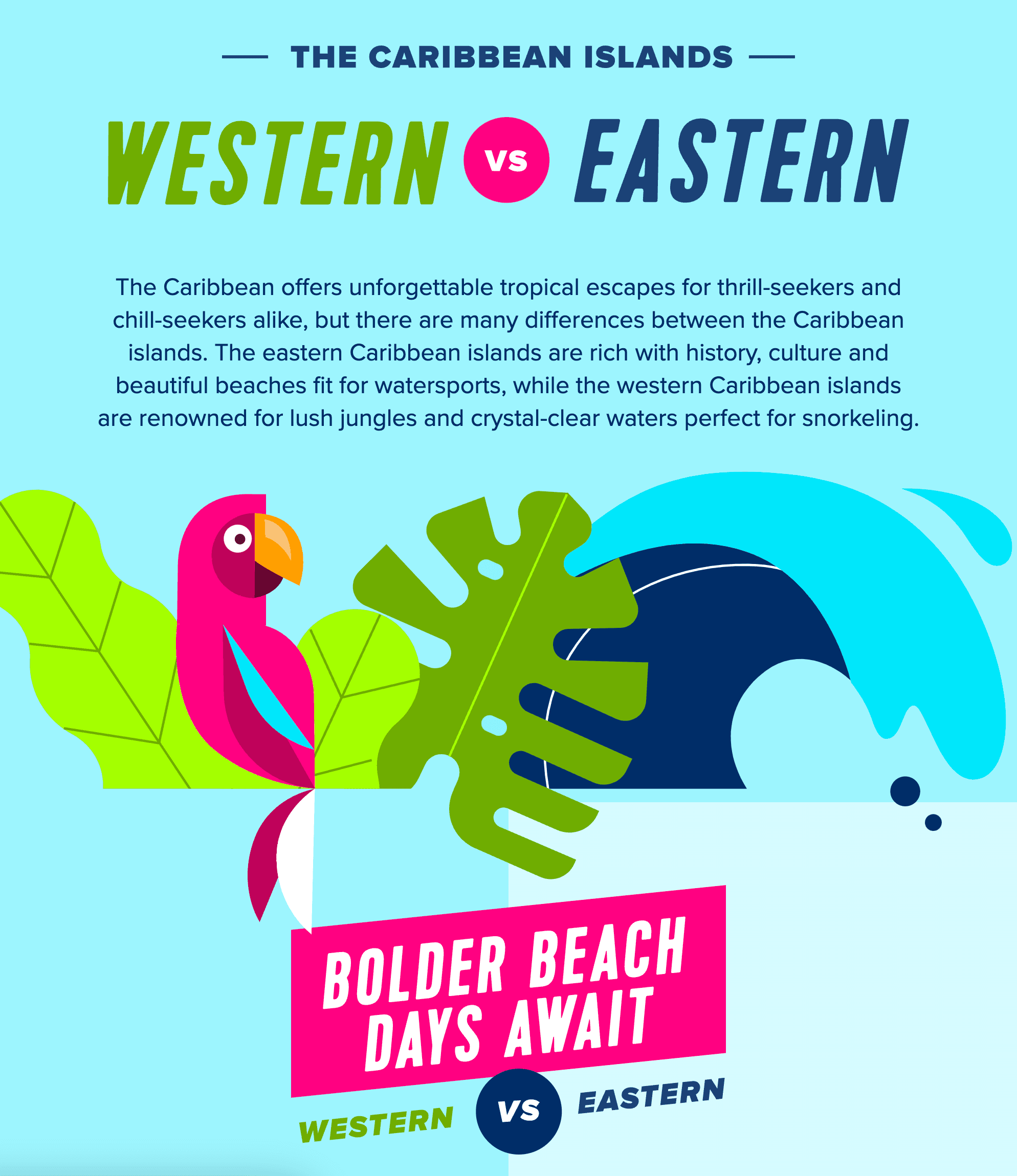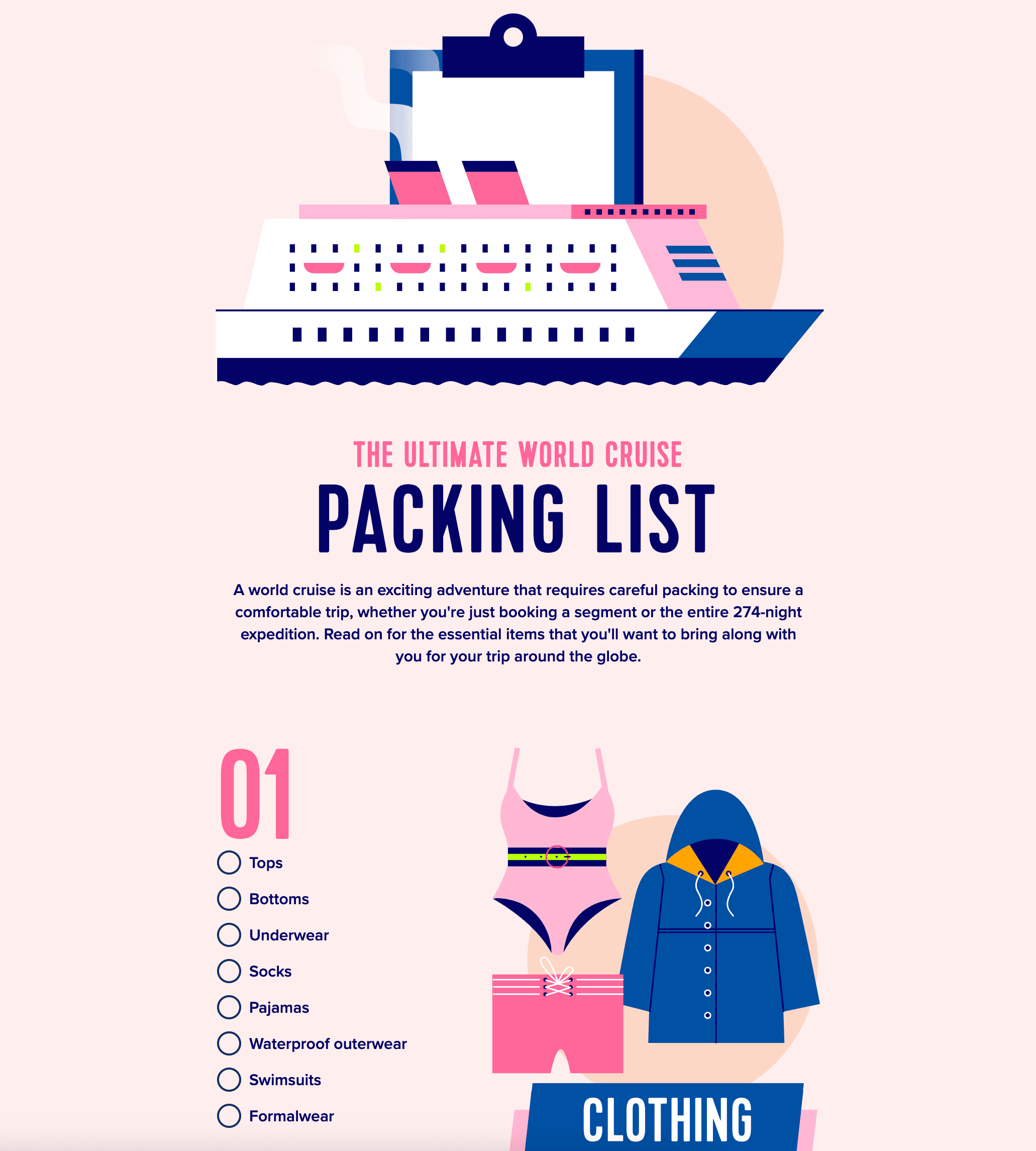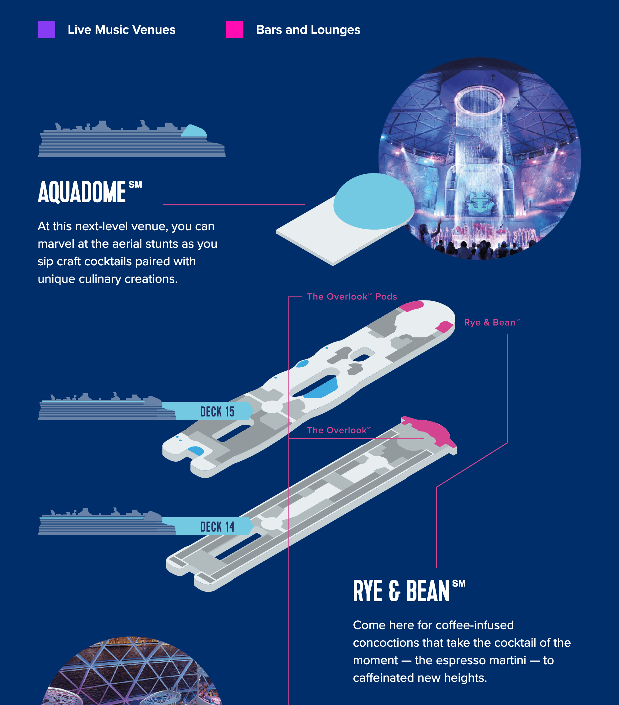 These projects involve collaborating with a global team of copywriters, designers, animators and Royal Caribbean's in house dev team. With support from Skyword’s editorial, production and strategy teams across multiple locations and time zones, we ensure that every asset is optimized to it’s full potential. Interactivity is achieved through subtle motion and animations, with static content implemented in AEM and housed on the Royal Caribbean blog.