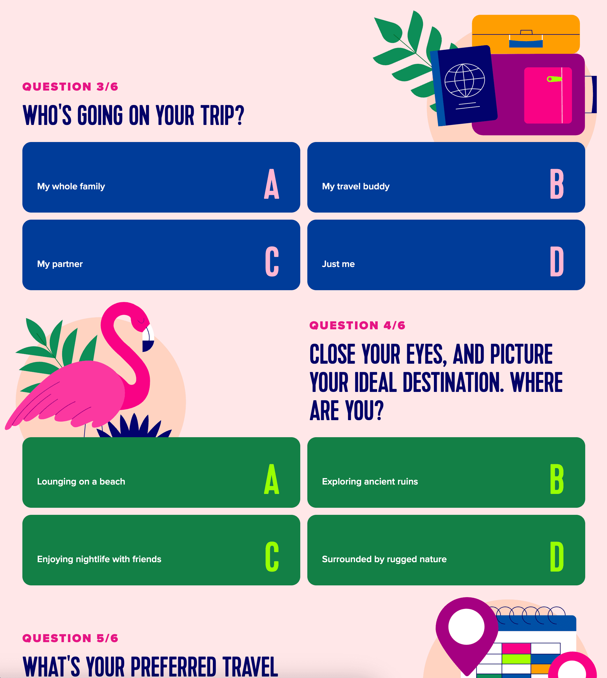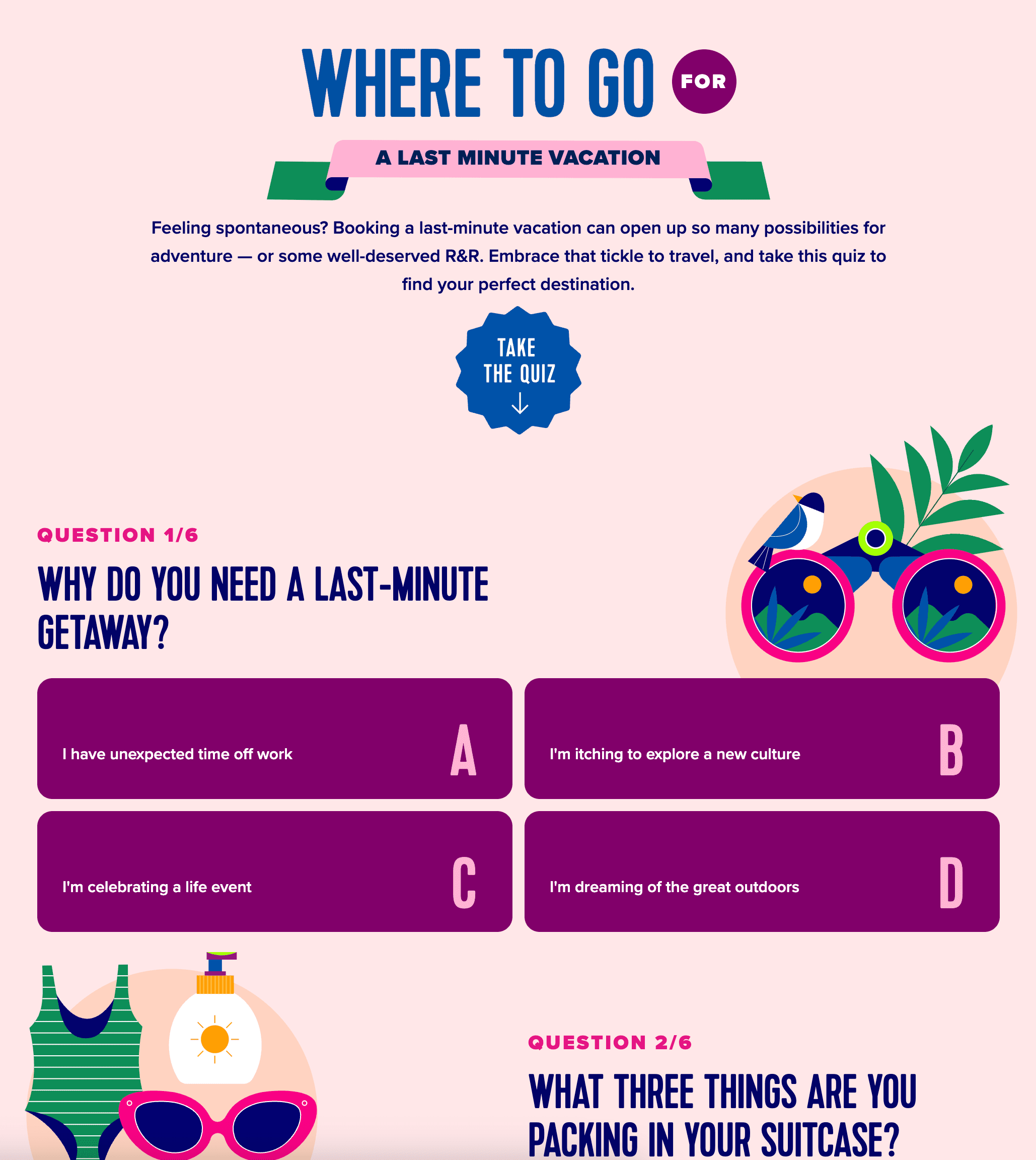 Interactive quizzes are a great option for marketers who want to actively engage web users while promoting products and capturing useful data. They can also serve an educational function, guiding audiences through an interactive process that presents information in bitesize chunks.
