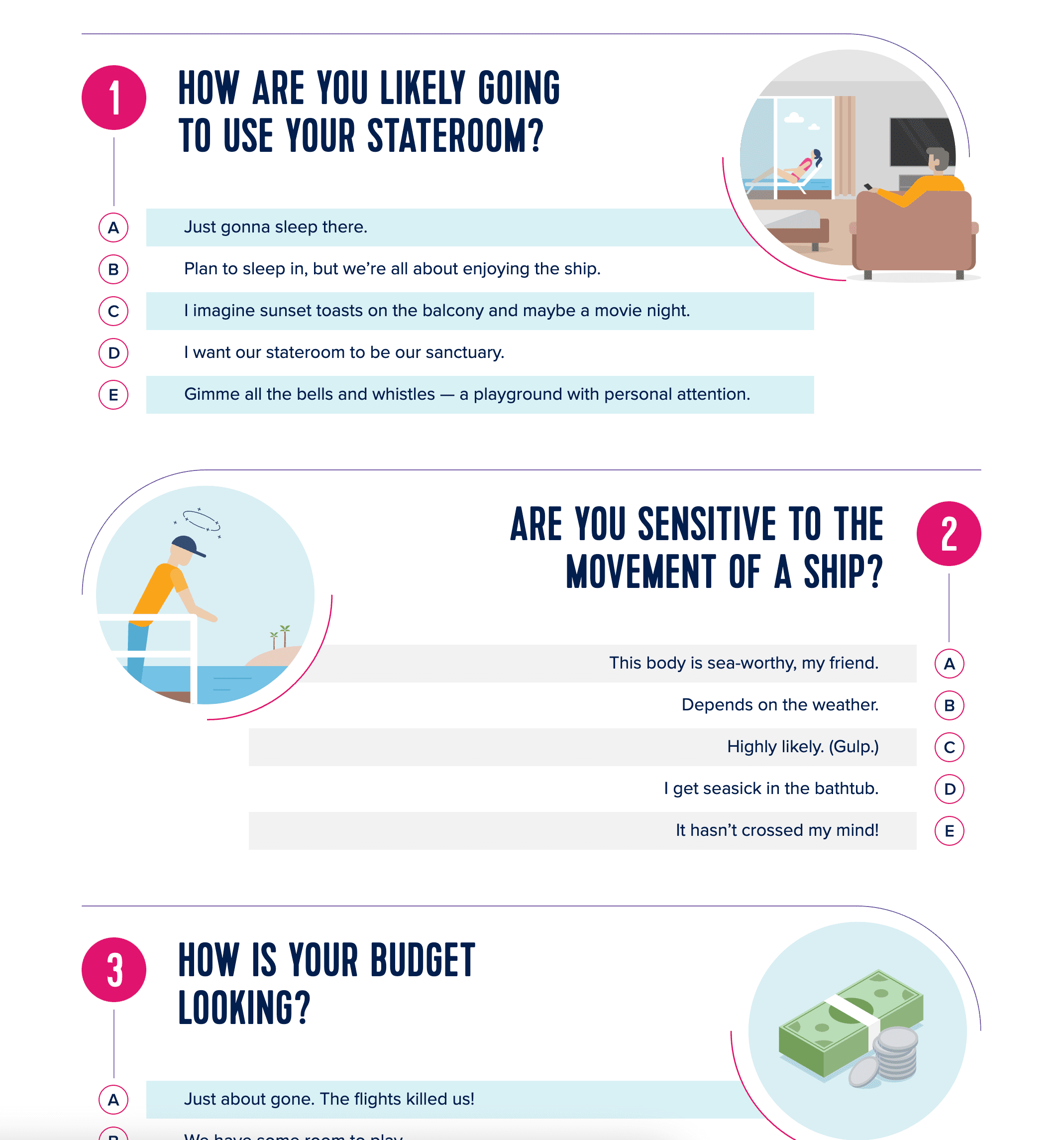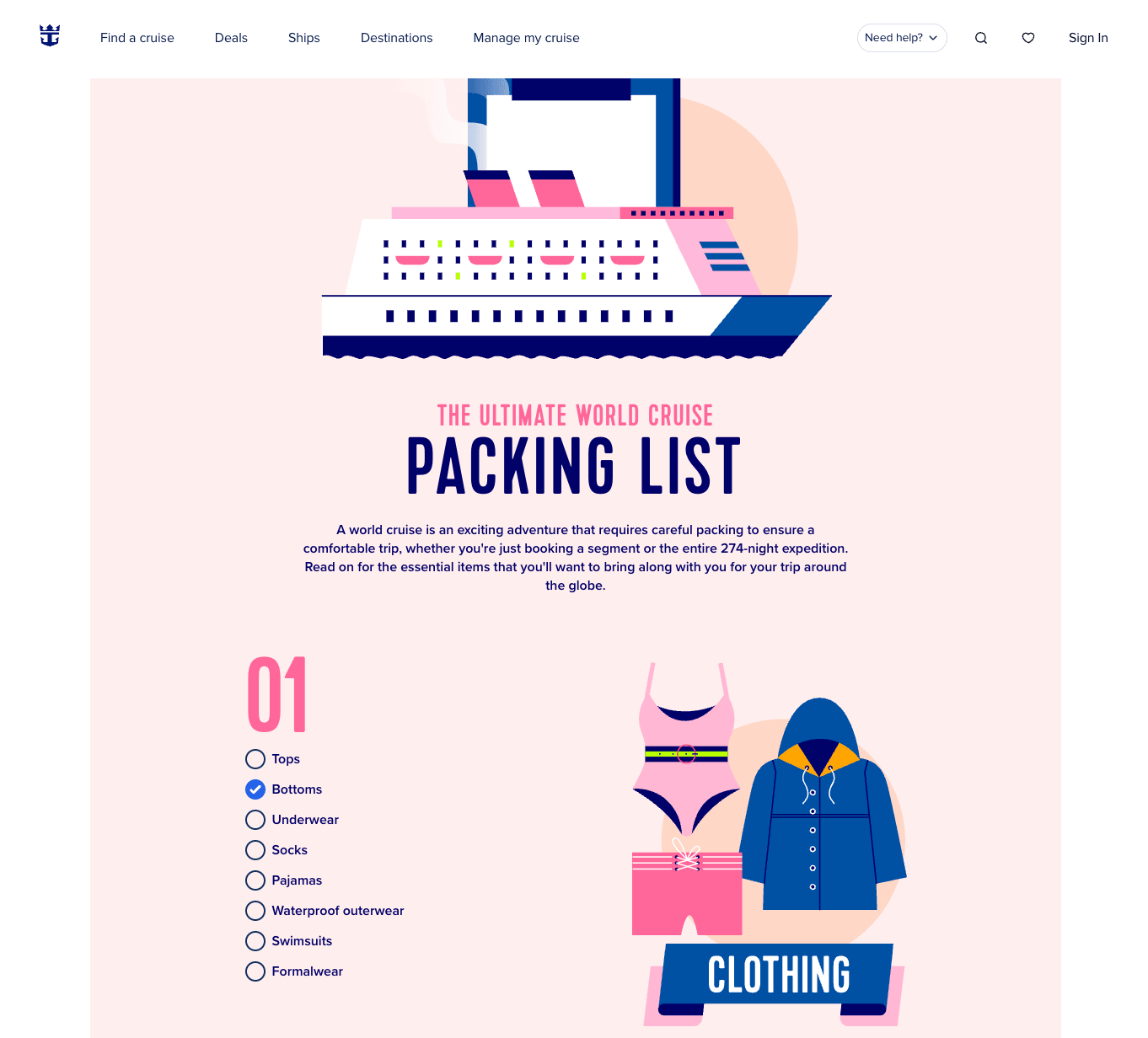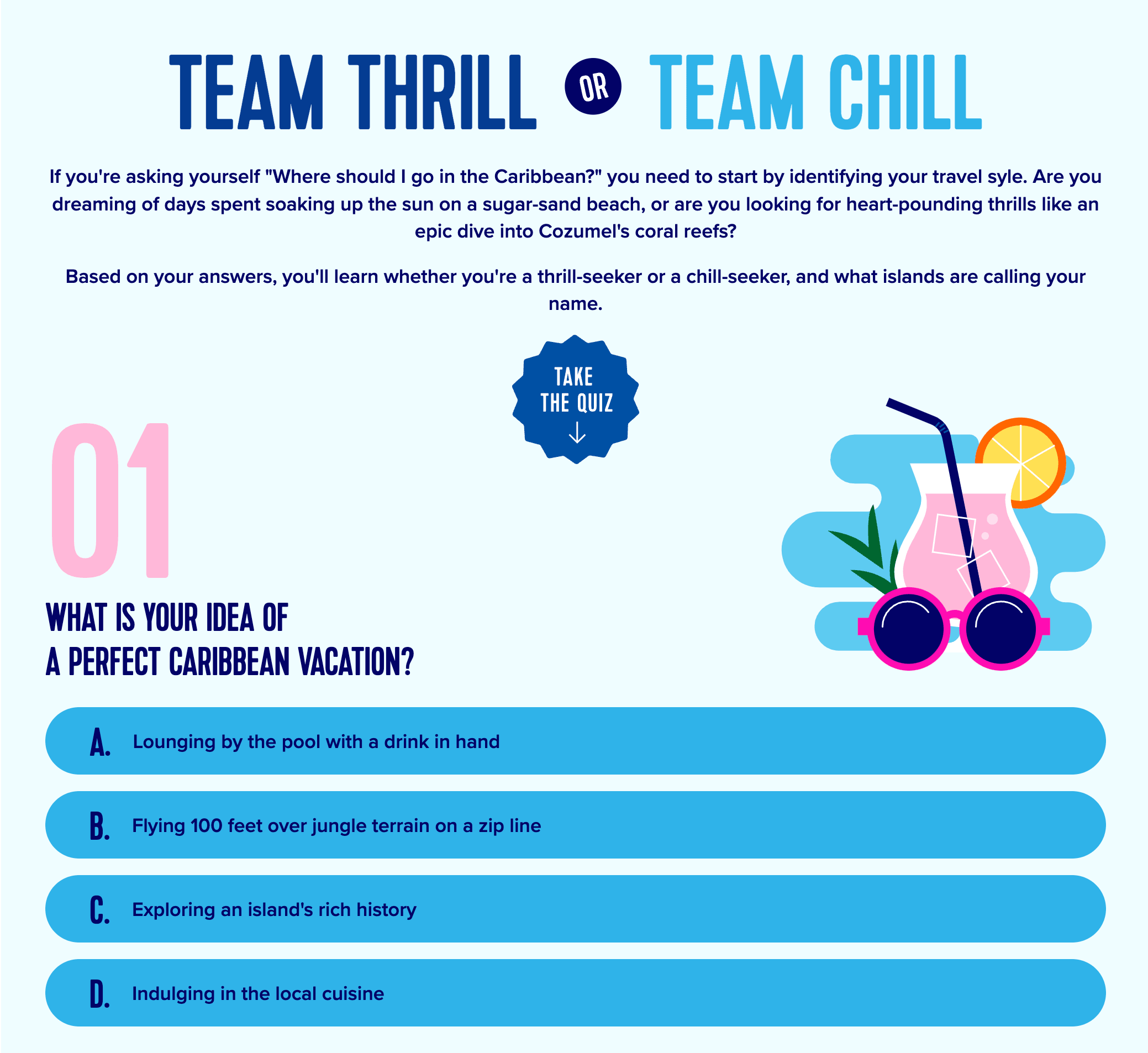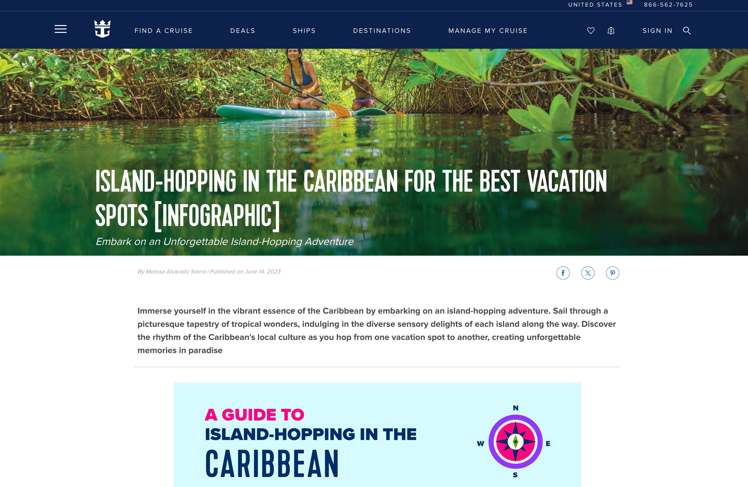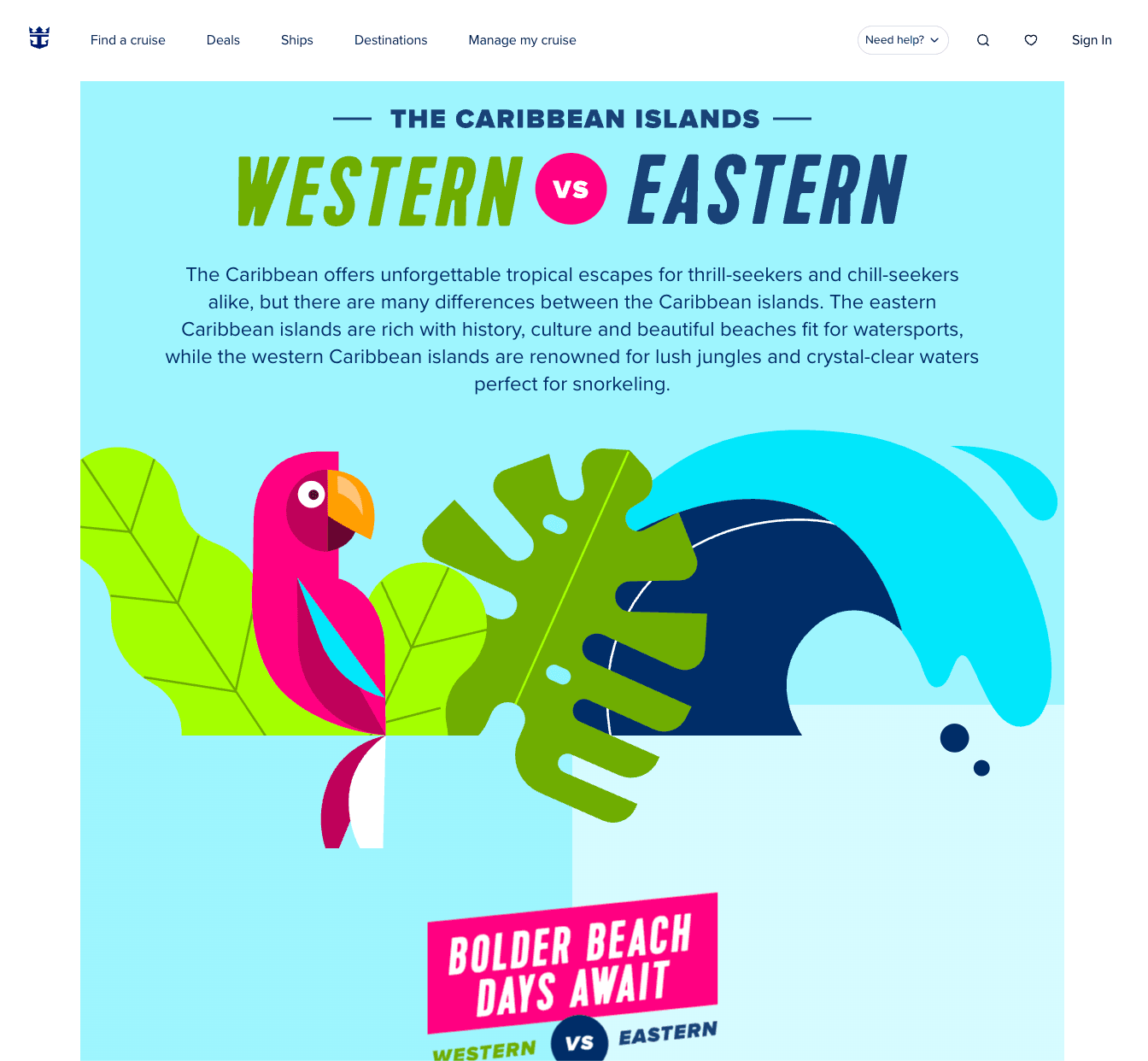 Hekla has supported Royal Caribbean Cruises with development over several years and countless projects, including infographics and quizzes that engage readers with interactive content promoting its luxury experiences. The business had a robust content hub full of sleek but static assets, and was looking to increase the SEO value of its content while providing accessibility and an enhanced user experience.