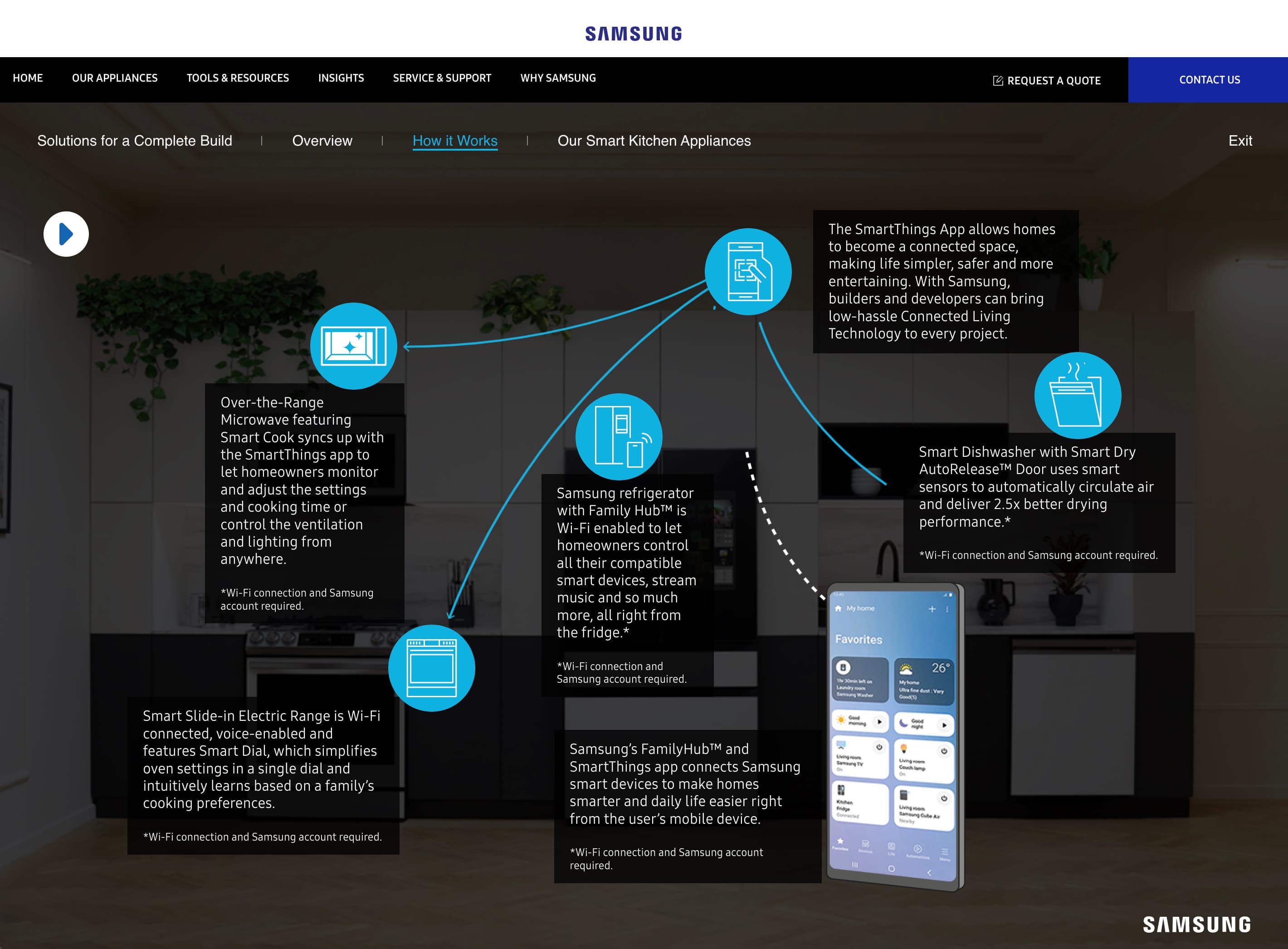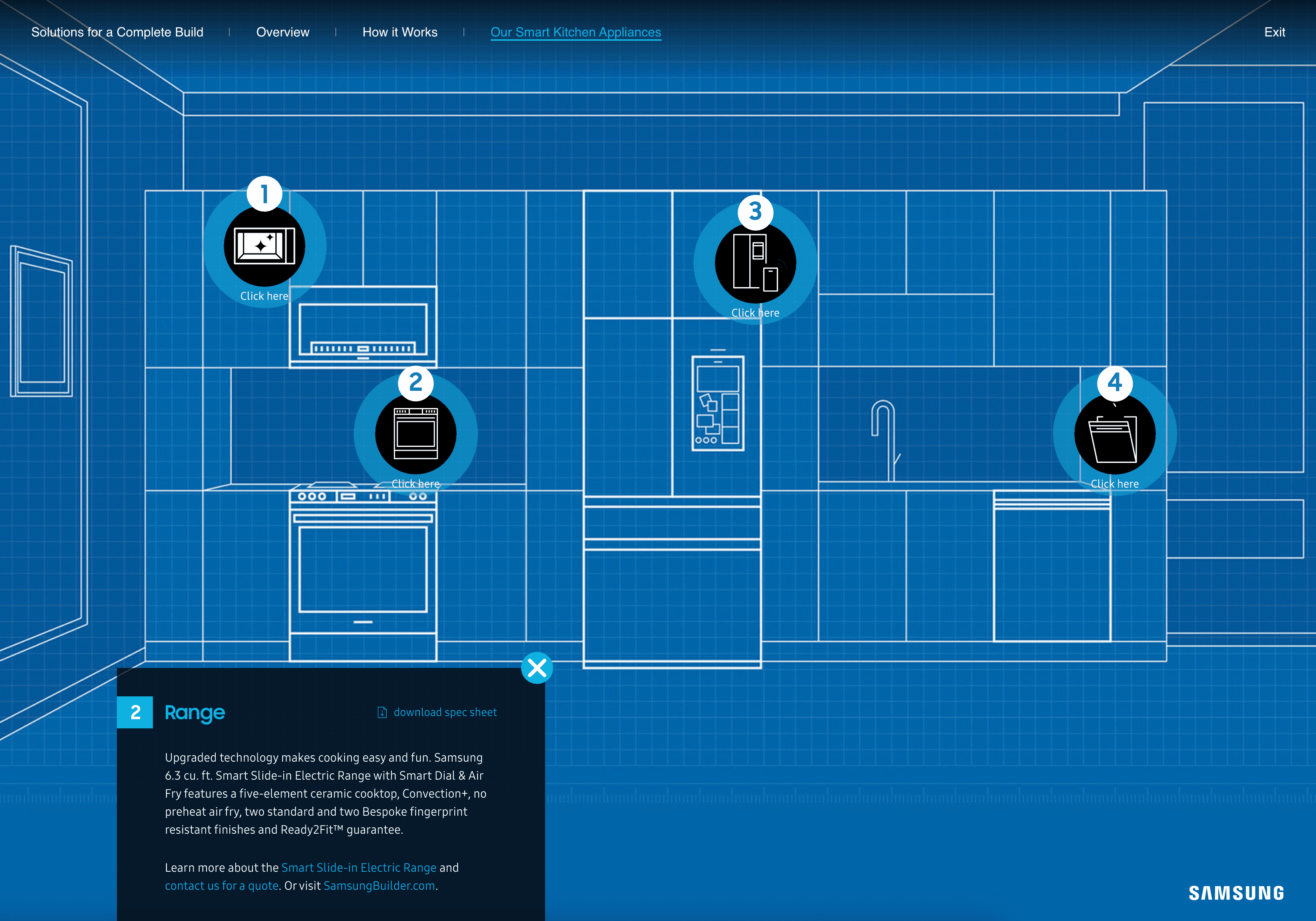 We set out to build an interactive guide built to visualize the connectivity and convenience of their home appliances for builders and guide their customers through a thoughtfully constructed buyer’s journey. We used the Pug template engine to build this interactive guide as a static site, with content stored within a YAML file, which allowed for easy editing and maintenance.